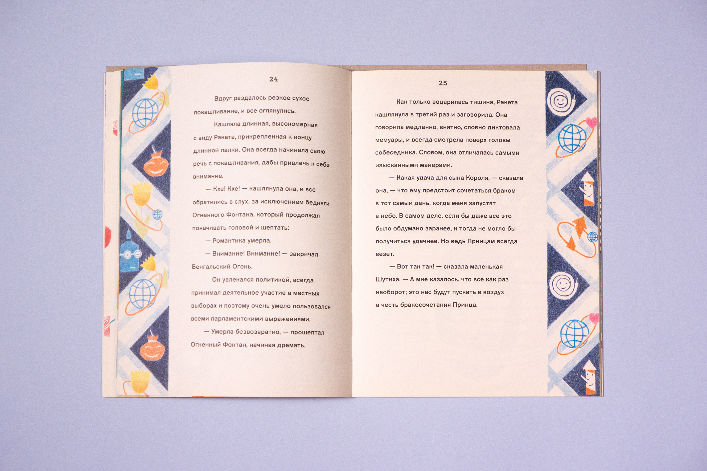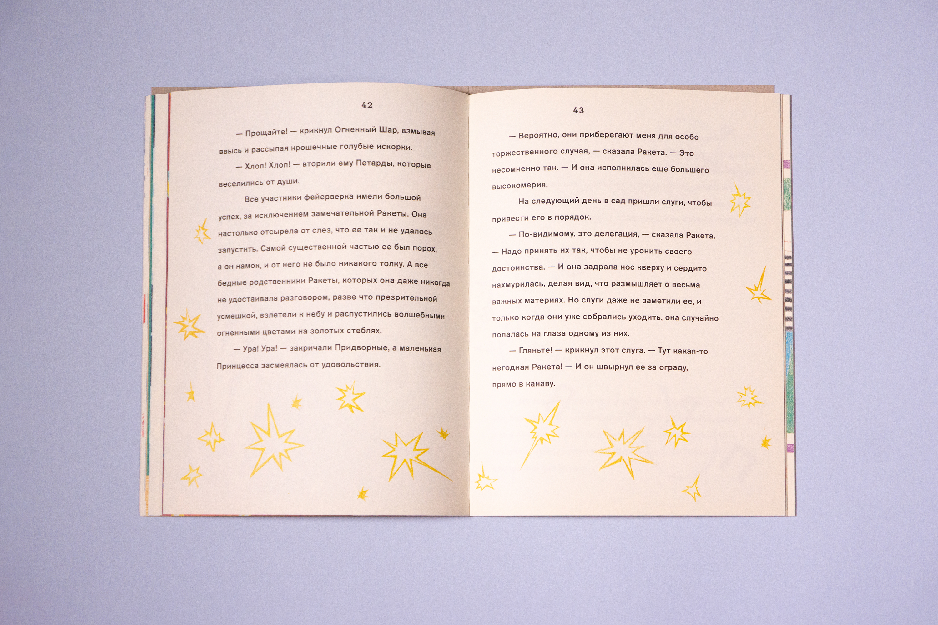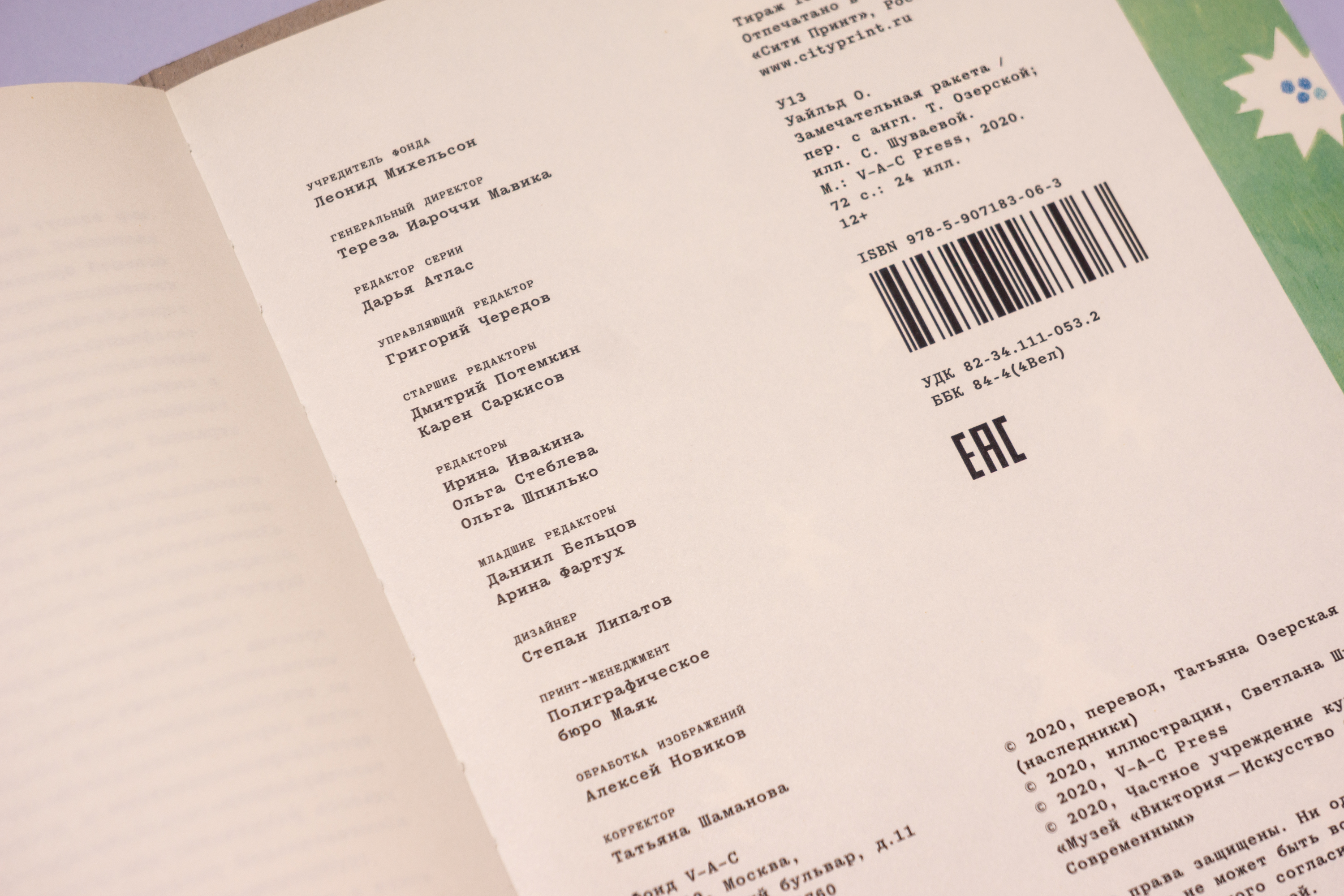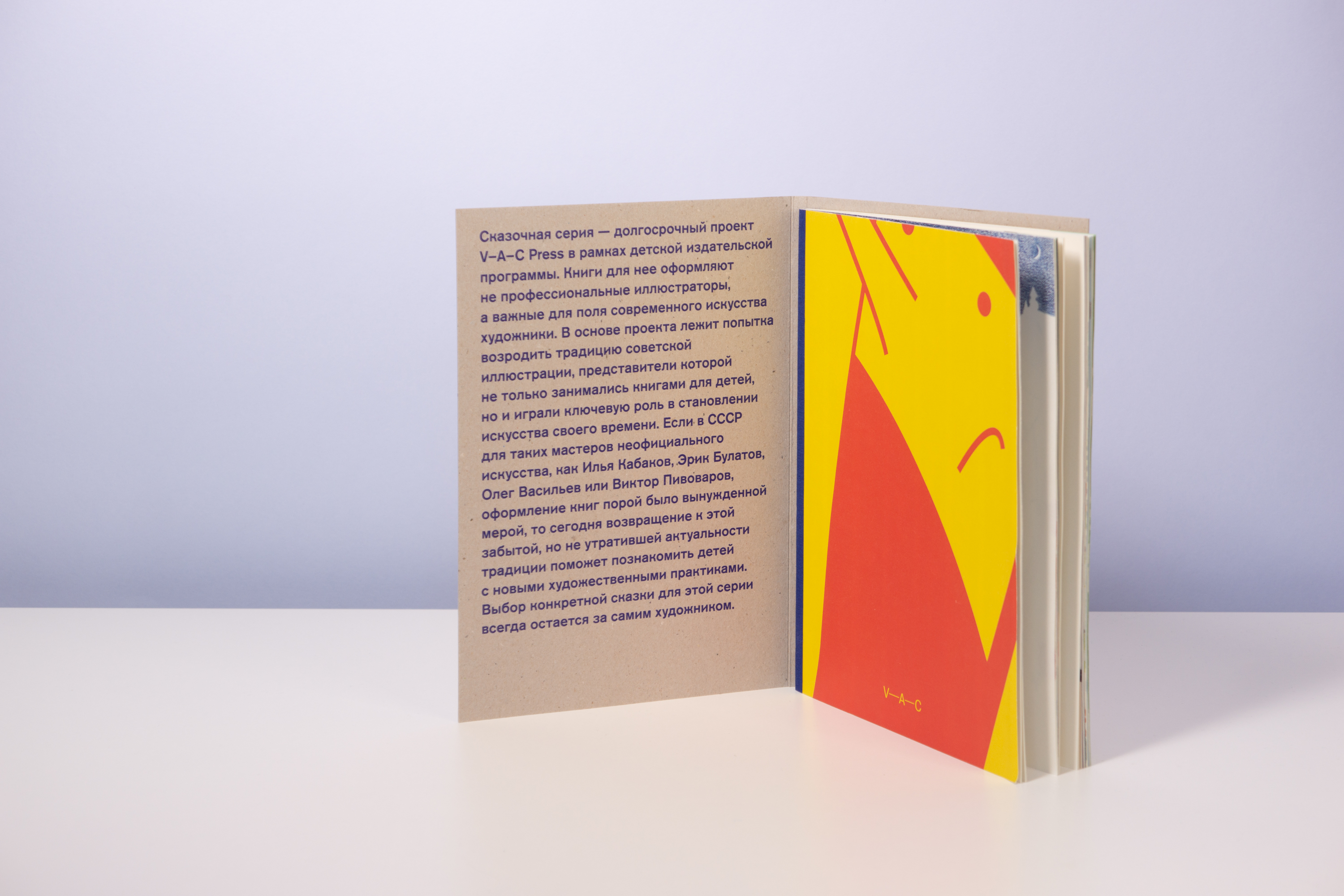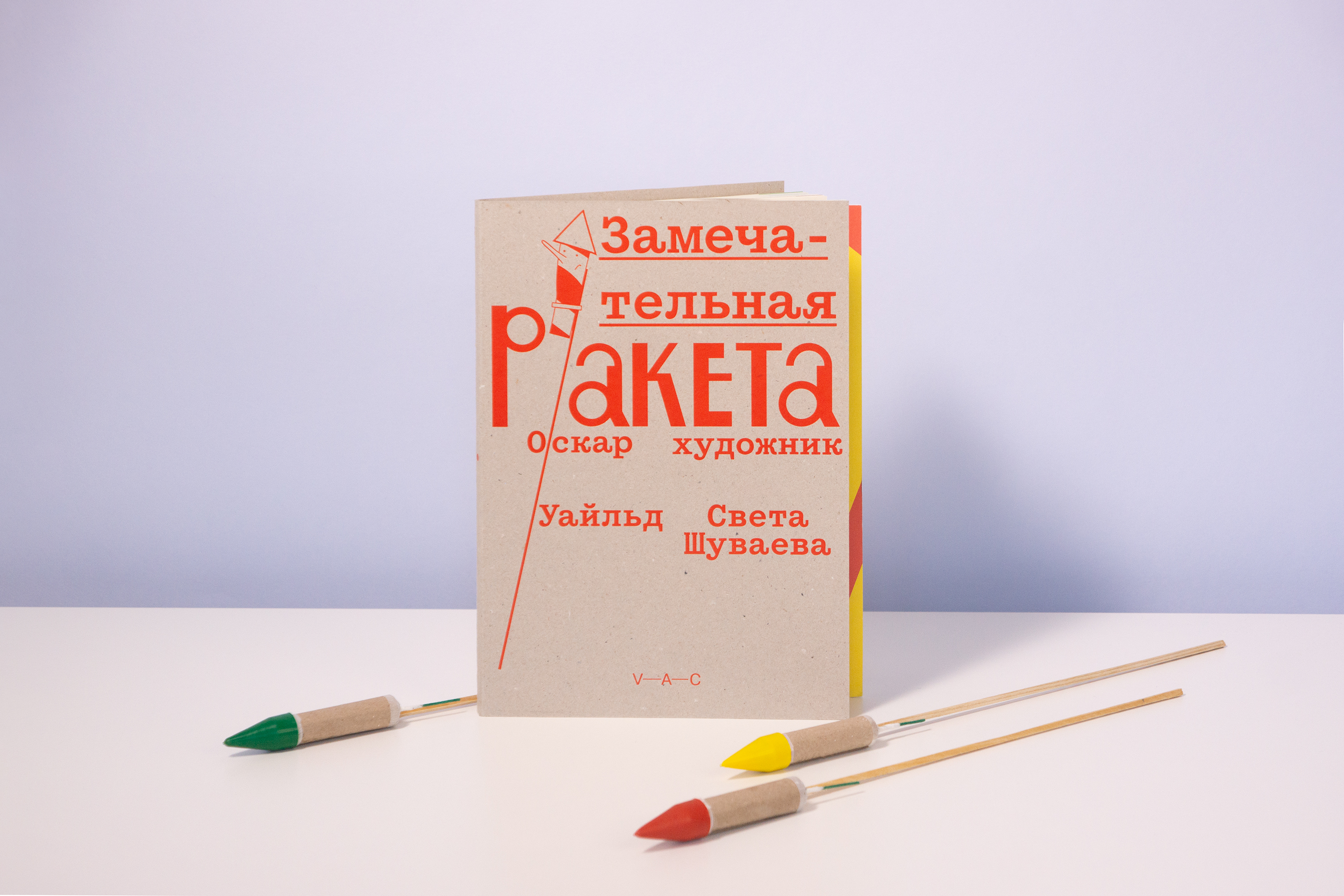 C 2019 года я работаю над детской книжной серией фонда V–A–C (Дом культуры «ГЭС-2»). Фонд V–A–С — это некоммерческая организация, направленная на поддержку и развитие современного искусства и культуры в России и за рубежом. Общая концепция серии, сформулированная куратором Дарьей Атлас, заключается в том, что фонд приглашает заметных современных художников для работы над книгами для детей. Приглашенные художники сами выбирают произведения для своих проектов. Эта серия одновременно отсылает к феноменам советской детской книги 1920-х и 1960-х годов, когда не по самым очевидным причинам, выдающиеся художники и поэты своего времени работали над детскими книгами. Я очень рад, что в команде фонда мы разделяли желание делать необычные и смелые книги. Для этой серии я разработал расшатанную систему, позволяющую делать книги разного формата, разными шрифтами, на разной бумаге, в первую очередь ориентируясь на художника и образ желаемой книги. Так же, я заложил, что буду сам рисовать буквы на обложках этих книг — с одной стороны, хотелось выглядеть иначе, чем большинство детских книг, с другой стороны, мне кажется, что если есть такая возможность, то дизайнер должен создавать пространство для собственных интересов. Главный редактор фонда — Григорий Чередов, принт-менеджмент серии — Бюро Маяк. Первая книга-серия — «Замечательная ракета» Оскара Уайльда, художник — Света Шуваева. Выбор книги Светой был для меня радостью, так как я очень люблю сказки Оскара Уайльда (и рассказы Чехова) в исполнении Стивена Фрая. В 2020 году книга была отмечена на национальном российском книжном конкурсе Жар-Книга, а в 2021 году она была награждена на немецком конкурсе Best Book Design from all over the World.