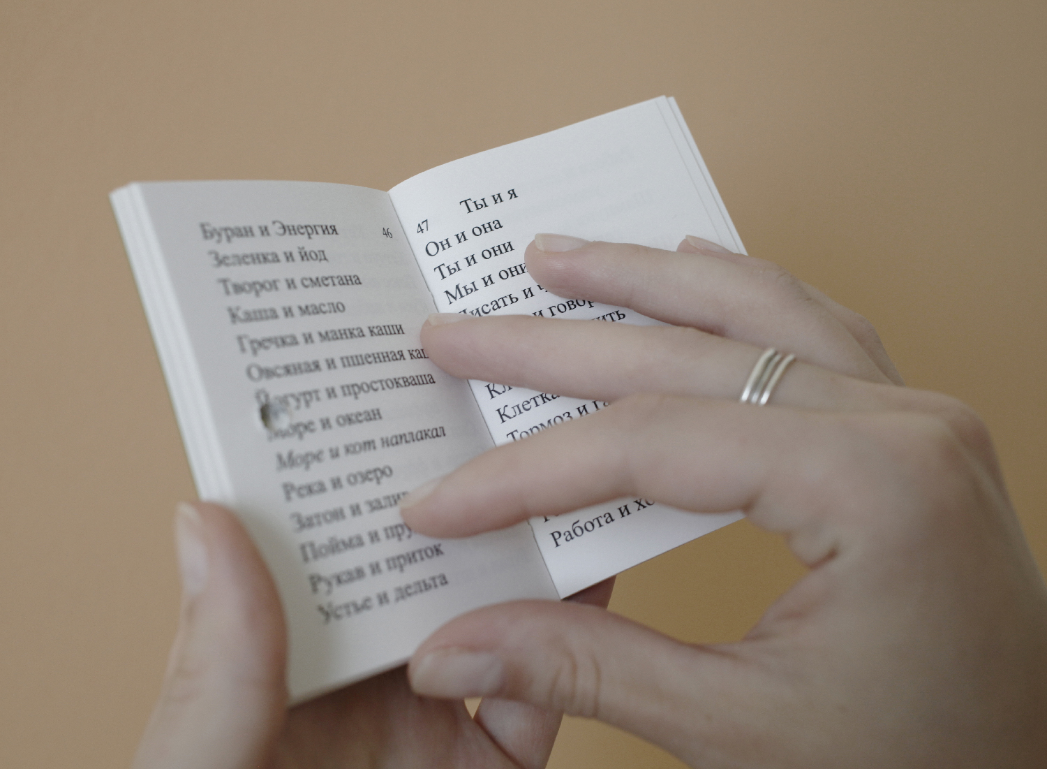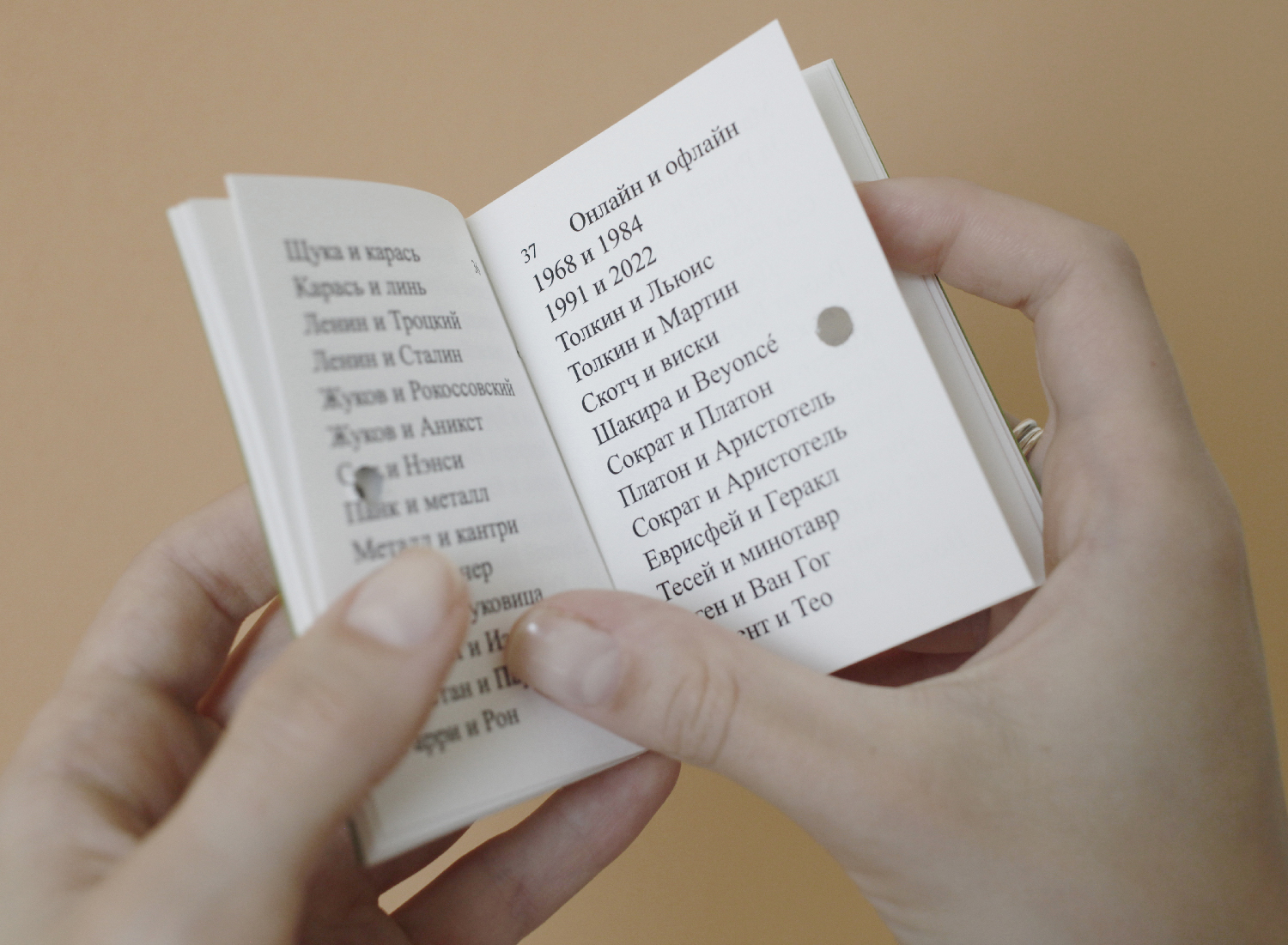 Книга Буба и Кика — это мой личный проект, который я сделал для собственного удовольствия и равновесия в 2022 году. Буба и Кика посвящена харизматичным парам. Мне кажется, что я достаточно описал, почему захотел сделать эту книгу во введении, его можно прочитать на скане-картинке ниже. Это полностью текстовая книга и мне очень нравится, что для печати такой книги, если вы используете хорошую бумагу (в моем случае это Biotop 90 гм2), достаточно практически любого лазерного принтера. Мне очень хотелось сделать книгу с предметом. Эта книга про пары и здорово, чтобы она тоже была в паре с чем-то. Что ещё важно, необходимость связать книгу с предметом была веской причиной сделать в книге дырку. Мне давно нравятся вещи из переработанного полиэтилена высокой плотности (HDPE), я даже собираю пластиковые крышечки больше года, их можно самому плавить в духовке. Небольшое московское производство выплавило для меня лист сразу с несколькими узорами и вырезало чуть больше сотни Буб и Кик. С одной стороны, мне кажется странным писать обо всем этом в тексте к проекту, но с другой стороны, легко аргументировать, что изначально практика дизайнера с 19-века была выходом художника из мастерской на производство. И то, что в современной индустрии работа устроена таким образом, что работа дизайнера часто заканчивается отправкой файла по почте, можно считать проигрышем. Я абсолютно уверен, что это лишает дизайнера радости и проектной власти. Поиск производства и расчет бюджета настолько же творческие задачи, как и любая композиционная проблема.