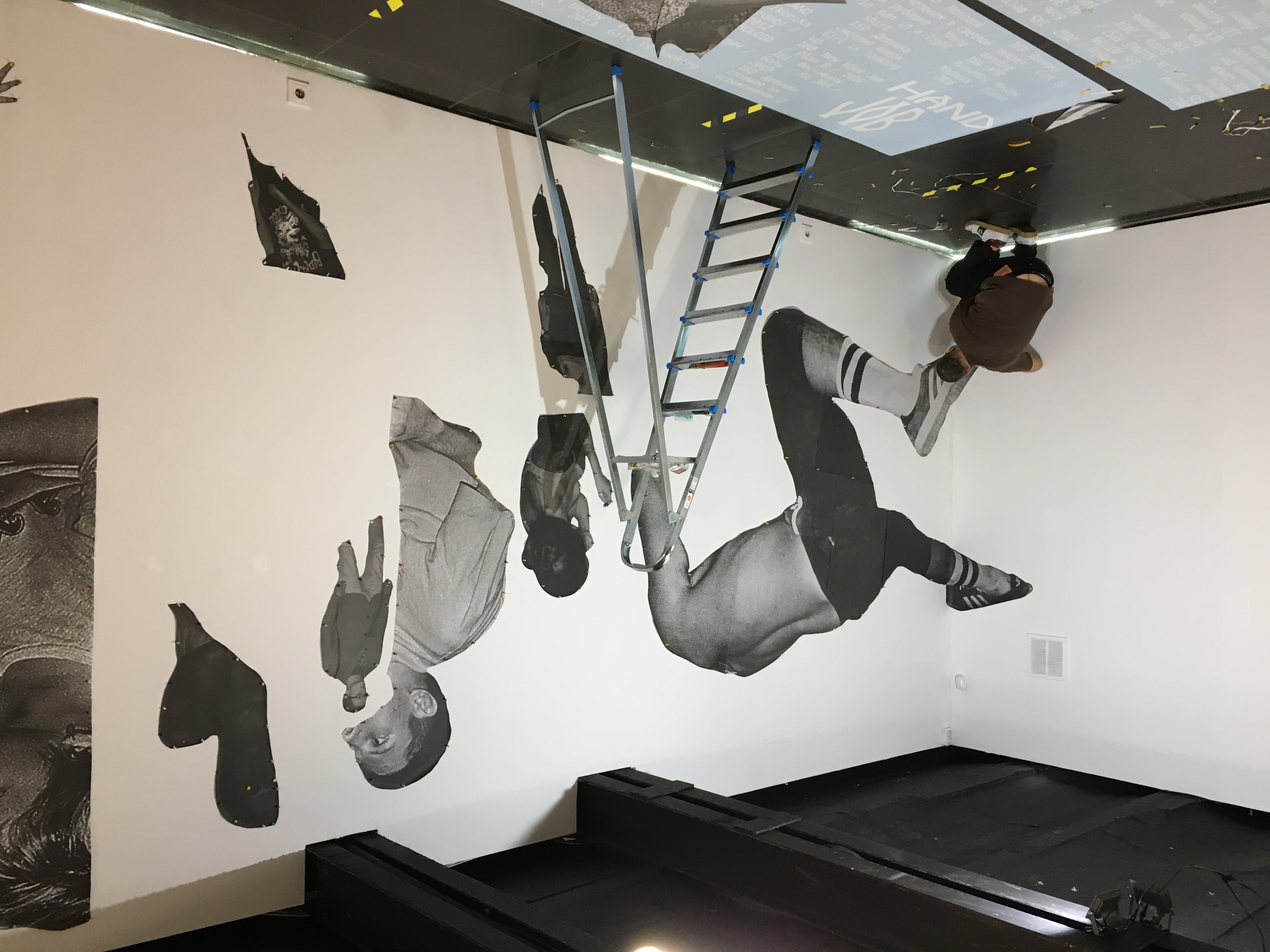 Для того чтобы у книги появилась структура, мы разделили фотографии на два блока. Фотографии из первого блока, их не так много, максимально качественно воспроизведены в книге с использованием цифровой печати. Эти фотографии глянцевые, плотные и цветные. Второй блок состоит из около семисот обрезков фотографий, большинство из них — это изображения обычных посетителей клубов и вечеринок. Эти обрезки мы напечатали на ризографе в один цвет, это водная печать низкого разрешения. Обрезки получились блёклые и шершавые. Столкновение двух видов печати визуально выделяет отобранные цветные фотографии, а большое количество обрезков, неравномерно распределенных по книге, создает ее ритм/течение. Мне кажется, разбивая серию отобранных фотографий, этот прием дополнительно разрушает иллюзию концентрации действия, которая сама собой возникает в серии скандальных снимков. Все фотографии и обрезки в книге пронумерованы и подписаны, подписи вынесены в конец книги. Сто экземпляров книги сшиты и склеены мною вручную.