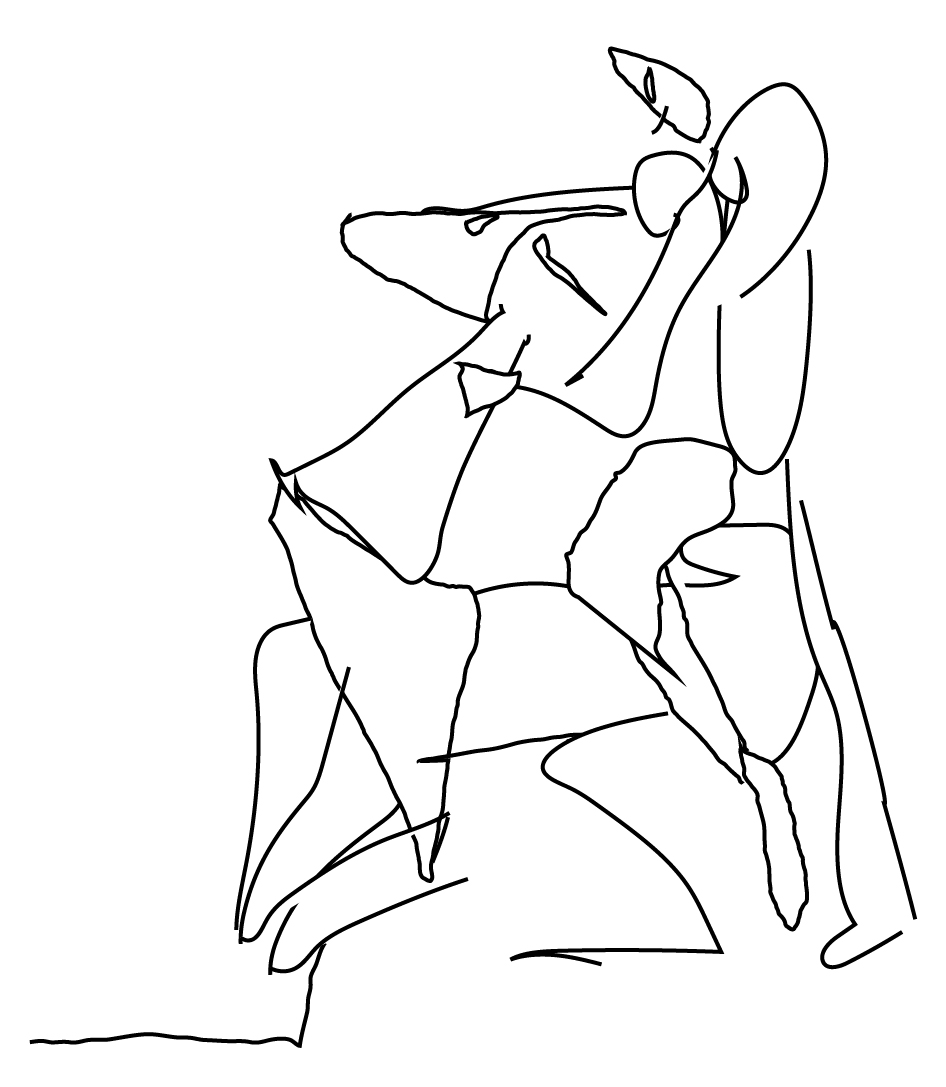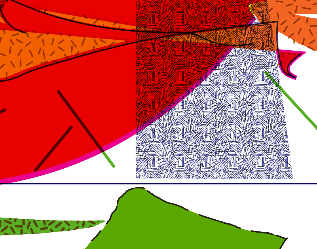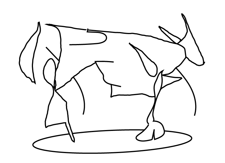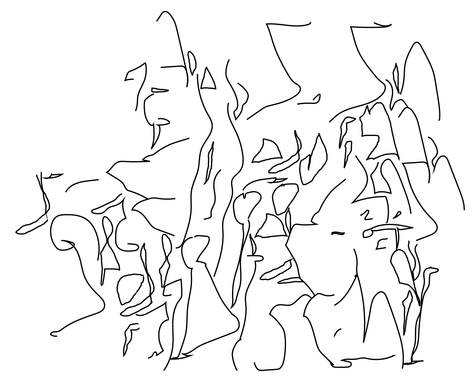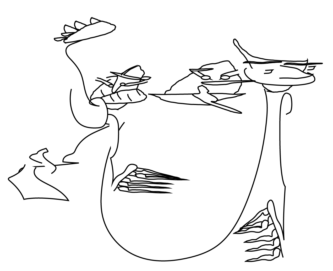 На первых этапах я пробовал работать с живым муравьем, которого выпускал на лист бумаги и вёл за ним линию карандашом, но муравей всегда хотел как можно быстрее сбежать, то есть двигался по прямой, что не было особо похоже на генератор случайной графики, пусть направление и менялось. В итоге, для этого принта я визуализировал траекторию полета птицы на случайном видео и использовал полученные линии и формы, для того чтобы собрать небольшой комикс о двенадцати подвигах Геракла. Геракл показался мне подходящим символом субъектности и свободного действия. Графика была вручную растеризована для печати на ризографе в семь красок на формате А3 в мастерской ризографии de Stencilzolder.