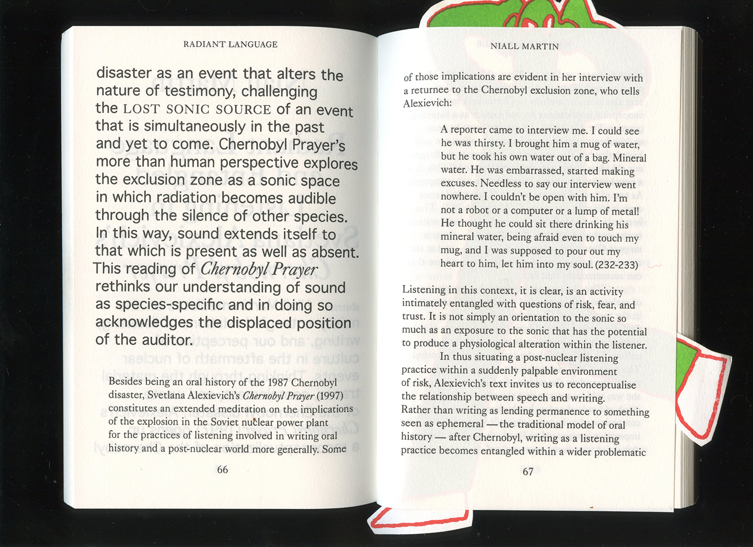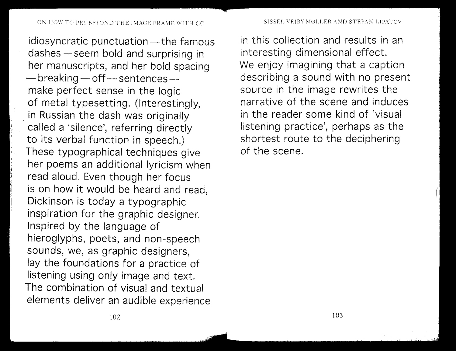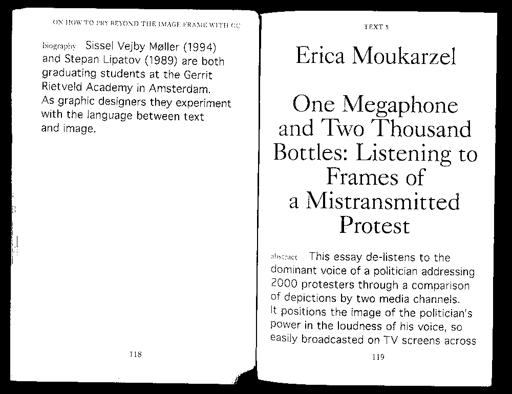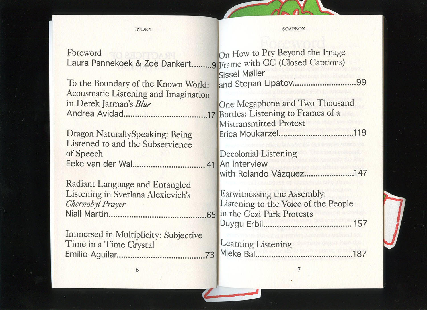 Для нас с Сиссел было интересным не только сделать макет печатного издания, но и участвовать как авторам. Вместе с дизайн-концепцией издания мы предложили редакции, что в каждом номере будем разрабатывать собственную более визуальную главу. Первый номер журнала был посвящен аудиальным практикам. Для него мы подготовили главу, которую назвали «Как подглядеть за край картинки с помощью *закрытых подписей* (closed captions)». Посмотреть на результат и прочитать комментарий к главе можно ниже. Кроме самого журнала, к каждому выпуску, мы делали картинки для соцсетей, плакаты итд.