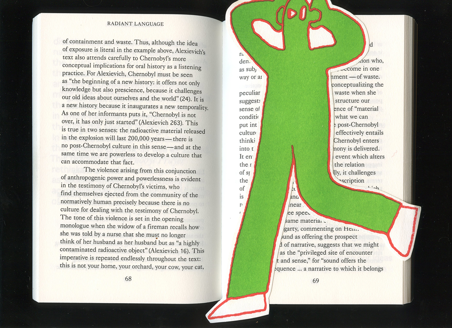 Важной частью нашего решения является книжный формат 125х190 мм и печать на ризографе. Нам с Сиссел нужно было уложиться в жесткий бюджет. Подбор техники печати, способ сборки журналов и логистика были важной частью творческого процесса. Обложку мы печатали сами в шелкографической мастерской Академии, а блок в знаменитой ризо-мастерской, которая, в том числе, была и самой дешевой в Голландии. Тесная комната с двумя ризографами, компьютером и столом с двумя стульями. На одном стуле одетый в платье скелет человеческого роста, а на стене репродукция плаката боксерского поединка Артюра Кравана и Джека Джонсона. Собирались журналы в мастерской, специализирующейся только на сшивке книг. Для того чтобы тираж состоялся, вся редакции участвовала в сборке блоков.