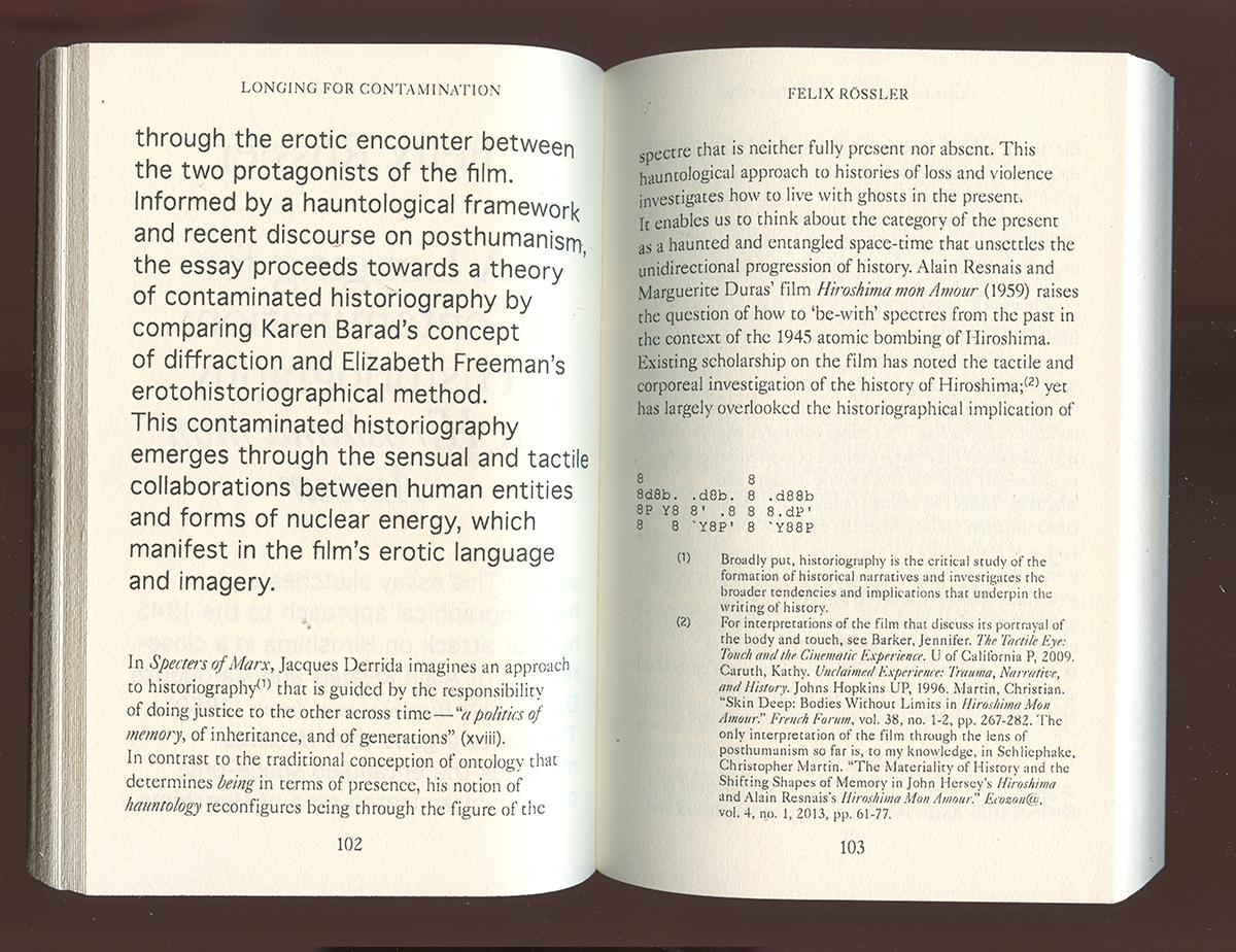 Для каждого из номеров мы с Сиссел, кроме дизайна, собирали главу, в которой представляли собственный взгляд (в каком-то смысле более визуальный) на общую тему номера. В первом номере мы рассуждали о том, как субтитры, описывающие звук, расширяют сцену, происходящую на экране. Во втором номере мы писали о меме, как о примере мягкой сетки, а в последнем номере мы сделали кое-что другое.